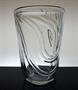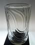Váza úctyhodných rozměrů z masivního čirého reliéfně broušeného a leštěného skla dekorovaná velmi jemným leptaným figurálním motivem z mytologie - obr a tři nahé nymfy. Ateliérové a nesériové sklo ze Železného Brodu z poloviny minulého století, okruh zdejší Uměleckoprůmyslové školy. Autorem neznačeno, tvaroslovím má váza odkaz na styl ART - DECO. Dobrý stav, rozměr v. 29cm, prům. 18cm, hmot. 3kg