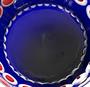Bezbarvé, modré, červené a bílé sklo, ručně broušené. Velká váza z bezbarvého skla podjímaného červeným sklem, přejímaná bílým a modrým sklem. Zdobená ručně probrušovaným ornamentem s florálním středovým pásem vycházejícím z lidové kultury dané oblasti. Broušené čočky, linky a ornamenty. Československo 1920 - 1950. Výška 32,5 cm, horní průměr 12 cm.