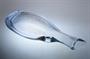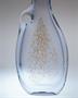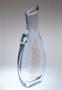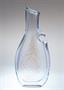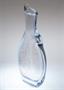 Neobvyklá velká váza z čirého masivního hutního skla s netypickým ouškem ( pro snadný úchop ), úzkým hrdlem na jednu vzrostlou květinu a jemným zataveným pestrobarevným dekorem z tzv. brokového skla z drcených střepů. Autorské hutní sklo ze 70-80tých let od sklářského výtvarníka a pedagoga - Miloslav KLINGER ( *1922 +1999 ). Vázu provedly sklárny ŽBS Železnobrodské sklo. Dobrý stav, rozměr v. 38 x 16 x 7cm, hmot. 3kg