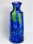 Mimořádně velké provedení vázy ( 36cm! ) z kolekce hutního skla "FLORA". Kobaltově modré jádro se zataveným dekorem jemných bublinek je přejímané čirou sklovinou se žlutým ornamentem. Autorské hutní sklo je návrhem sklářského výtvarníka - František KOUDELKA ( *1930 +1992 ), provedla sklárna Prácheň u Nového Boru po roce 1970. Dobrý stav, rozměr v. 36cm, prům. 15cm, hmot. 2,7kg