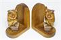 Pár větších zarážek na knihy ze dřeva s ručně vyřezávanou sovou sedící na knize. Sova je v kultuře symbol moudrostí - mytologické přátelství s bohyní Pallas Athénou. Půvabný doplněk do knihovny, nebo na pracovní stůl. Zarážky pochází z poloviny minulého století. Velmi dobrý stav, rozměr v. 18 x 15 x 10cm