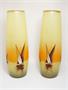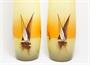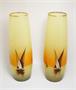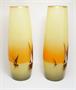 Velice dekorativní velké skleněné vázy z počátku minulého století, které jsou zušlechtěné malbou vypalovaným smaltem s motivem plachetnic na klidné vodní hladině. Nádech červené barvy nad obzorem evokuje západ slunce. Vzácně dochované párové vázy ve vynikajícím stavu, krásná práce malířů skla, pravděpodobně ze severu Čech. Rozměr - v. 34cm, prům. 12cm