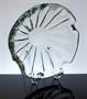 Celoplošně broušený velký popelník - objekt organického tvaru z čirého hutního skla. Ateliérové sklo práce po roce 1950 od sklářského výtvarníka, pedagoga, brusiče a rytce - Václav PLÁTEK ( *1917 +1994 ), žák prof. K. Štipla a F. Kysely. Sklárny Umělecké sklo n.p. Nový Bor. Dobrý stav, rozměry - v. 8cm, prům. 21cm