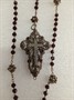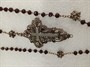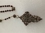 Velký starožitný růženec, stříbro filigránové, zdobeno českými granáty. Rozměry kříže jsou 6,5 x 4,5 cm .