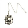 Delší stříbrný náhrdelník s honosným, velkým odnímatelným závěsem. Šperk byl vyroben ze sterlingového stříbra (925/1000) a jeho celková váha činí 23,99 g. Rozměry závěsu 5,7 x 3,5. Délka řetízku 60cm. Starý, autentický šperk ve výborném stavu.