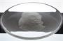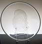 Excelentní a ojedinělá práce ze 70tých let z masivního čirého skla s velkoplošnou rytinou Friedricha (Bedřicha) Egermanna, předního novoborského obchodníka se sklem a uznávaného inovátora sklářských technik ( *1777 +1864 ). Mistrovská rytina provedená vespod ze sklárny EXBOR Nový Bor produkující luxusní a umělecké sklo - značeno. Dobrý stav, rozměr - prům. 35cm, v. 5cm, hmot. 4,3kg!!