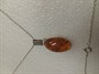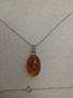 Jantarový náhrdelník . Jantar zasažený ve stříbře ryzosti 835/1000 .Délka závěsu je 3,5 cm. Řetízek ryzosti 900/1000 , v délce 59 cm . Celková hmotnost je 7,29 gr.