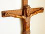 Závěsná dřevěná plastika, lidová práce z první poloviny minulého století - korpus Ježíše na kříži opracovaném dlátem. Kvalitní práce neznámého autora, velmi dobrý stav bez napadení červotočem aj., drobné poškození trnové koruny. Ihned k vystavení v interieru, rozměr kříž 85 x 55cm, korpus 56 x 50cm