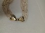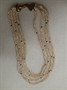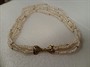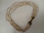 Výrazný víceřadý náhrdelník z říčních perel , uzávěr je vyrobený ze zlaceného stříbra 925/1000 ( 9,50 gr ) ve tvaru mašle . Délka mašle je 4,5 cm . Celková délka 49 cm .