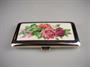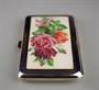 dámské stříbrné cigaretové pouzdro, víko zdobené emailem s malovaným motivem růží, vnitřní zlacení, Ag 96,06 g/900/1000, Rakousko-Uhersko, kolem r. 1918, dobový punc (Diana) se značkou vídeňského Puncovního úřadu; rozměry 9 x 5,8 cm
