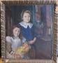 Olej plátno, rozměr 90 x 80 cm, dvě postavy dětí, malba částečně poškozená, signováno vpravo dole