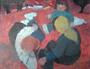 Olej na kartonu, rozměry 50 x 70 cm, signováno, původní autorský rám. Vzadu popis + razítko ČFUV. Jedna z verzí autorčina nejslavnějšího obraz Rodina.