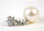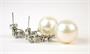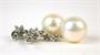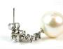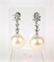 Visací náušnice z obecného kovu zdobené sladkovodními kultivovanými perlami průměrů 1,3 cm a syntetickými kameny. Štyfty a puzety jsou ze stříbra ryzosti 925/1000. Délka náušnice 3 cm.