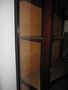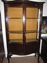 Dvoudveřová vitrína se zvířecíma nohama, ořech, masiv, prohýbané přední dveře i sklo. Restaurovaná, kol. r. 1920, Vše naprosto původní, včetně látkového potahu uvnitř. v.179cm, š.105,5cm, hl.34,5cm