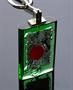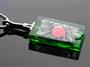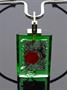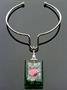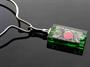 Autorský šperk ze 60. - 70. let od sklářské výtvarnice Laděny Víznerové, bezbarvé a zelené broušené sklo se zatavenými kovy, obecný kov, výška skla je 6,5 cm, celková 26,5 cm