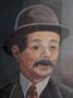 Vlasta Burian známý jako Král komiků, byl český divadelní herec, režisér, zpěvák, divadelní ředitel, sportovec, podnikatel, filmový herec němé i zvukové éry filmu, mecenáš, spisovatel, mim a imitátor, který se díky své nespoutané živelnosti, improvizaci a potřebě být všude první vypracoval mezi skutečné hvězdy českého filmu, divadla i rozhlasu.Byl jedním z nejpopulárnějších herců za první republiky. Obraz je kombinovaná technika na kartonu. Je zasklený a zarámovaný do původního černého rámu. Vzadu je značka rámaře, Arnošt Dobrý, obchod s obrazy, rámy a sklem, Plzeň, Gorkého 4. Vpravo dole je signatura malíře S. Máchal.Akademický malíř Svatopluk Máchal se narodil v roce 1895 v Třebíči a zemřel v roce 1947 v Praze. Na Akademii výtvarných umění v Praze studoval u malíře Jakuba Obrovského. Studijní cesty podnikl do Paříže a Berlína. Je uveden ve Slovníku československých výtvarných umělců od Dr. Tomana. Obraz měří bez rámu 60 x 49 cm, s rámem 66 x 55 cm.