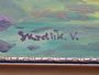 Olej na kartonu 25x35cm,podpis uprostřed,vzadu štítek s názvem díla,autorovým bydlištěm a cenou v první republice 3.000,-Kč.