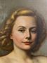 Vratislav Hlava (Rudolf Bém), mistrovský portrét dámy. Olej s temperou, plátno nalepené na sololitu, pasparta. Obraz je datován 1946, vzadu přípis s rozměry: 55 1/2 x 69 1/2 a popis "Paní Míla Pazeltová". Obraz není rámován a malbu bude třeba odborně vyčistit.