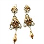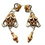 Efektní, dlouhé, závěsné náušnice zhotovené v secesním stylu v první polovině 20.století. Náušnice v kombinaci sterlingového stříbra (925/1000) a zlata ryzosti 333/1000. Celková váha 5,10 g. Osvědčení Puncovního úřadu. Délka cca 8 cm. Náušnice jsou lehké a velmi příjemně nositelné, výborný stav.