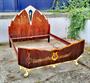 Vyrezavana postel, pombinace dýha palisandr, barva slonova kost a zlaceni. Rozměr 176x206cm, výška roštu 45cm, celkova výška 166cm. Dřevěný rost součástí.