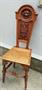 Vyřezávaná židle, slušný bytový stav. Rozměr 37x36cm, výška 104cm, výška sedáku 45cm