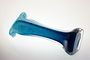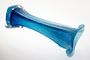 Krásná secesní váza elegantního štíhlého tvaru s otevřeným hrdlem z kobaltově modrého hutního skla přejímaného čirou sklovinou. Hutně tvarované voluty, spodek je broušený s čočkou po heftu od sklářské píšťaly. Provedly krystalerie v severních Čechách počátkem minulého století. Dobrý stav, rozměr v. 30cm, prům. 13cm