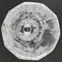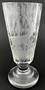 Čiré ryté a broušené sklo. Vyšší sklenice ze silnostěnného skla s kruhovou masivní podstavou. Zdobená rytinou jelena na mýtině se stromy, svislé fazety. Čechy 1870 - 1910. Výška 18,5 cm.