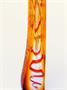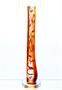 Starší vysoká stéla z čirého skla s barevnými vtaveninami a červenou spirálou, hranováno a broušeno (battuto), Novoborsko kolem r. 2000, návrh neurčen. Výška 46 cm a 1,5 cm sokl, dobrý stav bez poškození, běžné známky stáří a používání.