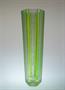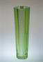 Váza ze 60-70tých let minimalistického válcovitého tvaru s probrušovaným geometrickým dekorem, který je proveden na vrstveném výrazně zeleném skle. Čiré masivní jádro má tři matované plochy, pravděpodobně provedly sklárny v Novém Boru, dobrý stav, rozměr - v. 29cm, prům. 8cm