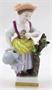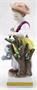 Bílý, barevný, ručně malovaný a zlacený porcelán. V rokokovém stylu. Älteste Volkstedter Porzellanmanufaktur, Volkstedt Rudolstadt. Porcelánová figurka stojící dívky, zahradnice, vedle kmene s listy. V pravé ruce s konvičkou, v levé ruce drží štěpařský nůž. Čtvercový podstavec se zlatým pásem. Značeno zespodu: modrá písmena s korunou a letopočtem 1762, ručně psané číslo malíře. Německo minulé století. Výška 11 cm.