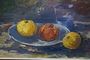Motiv zátiší "Jablka se sklenicí" malovaný s velkou virtuozitou přednesu, olej na kartonu od malíře a výtvarníka Jaroslav PAVLIŠ ( *1951 +2002 ) Umělec převážně krajinář, který tvořil na Vysočině a jen výjimečně maloval zátiší a portréty. Signováno p.d. původní rám. Dobrý stav, rozměr rámu - 66 x 43cm, rozměr díla - 49 x 26cm