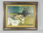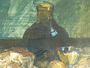 Zátiší s koňakem, olej na překližce, signováno vpravo dole tužkou nečitelně, rozměry 37 x 49 cm, s rámem 54 x 66 cm. Rámováno Vzadu přípis R. Lexa.