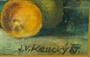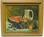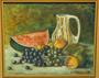 Olejomalba na plátně, stylové zátiší s ovocem na desce stolu, jemuž dominuje džbánek s oblíbeným sběratelským dekorem "PYŽAMO" ( Ditmar Urbach návrh 1959 Jarmila FORMÁNKOVÁ ). Obraz z roku 1967 je dílem malíře - Václav KOUCKÝ ( *1907 ). Signováno a dat. p.d. Dobrý stav, celkový rozměr 68 x 59cm, rozměr díla 53 x 43cm