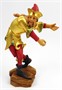 Dřevořezba, polychromie, zlacení. Kopie ze série slavných Moriskentänzer (tanečníků Morrisova tance). Autor originální předlohy: Erasmus Grasser (1450-1518) slavný německý pozdně gotický řezbář, sochař a architekt. Jeho nejznámějším, světově proslulým, dílem jsou právě tito tanečníci. Sérii v originálu vysokých soch z lipového dřeva vytvořil pro taneční sál Staré radnice v Mnichově. Název figury: Zattelrock (špičatá sukně) - Tanečník ve špičaté sukni. Výrobce: Řezbářství J. Heinrichmeyer, Rimbach, Německo. Dřevořezba tanečníka ve vysoké čepici oblečeného do zlatavého oděvu se sukní se špicemi. Červené punčochy s rolničkami i stejně barevné rukávce a černé dobové špičaté boty. Na stylizovaném reliéfním podstavci. Německo, Rimbach, minulé století. Výška 25 cm, rozměr podstavce 10 cm x 8,5 cm.