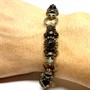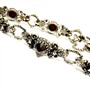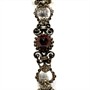 Půvabný, dekorativní, článkový náramek. Šperk byl vyroben ze stříbra ryzosti 835/1000, o celkové váze 22,88 g. Každý z článků náramku je osazen velkým, fazetově vybroušeným granátem. Pojistný řetízek. Délka cca 20cm - díky tomu je šperk vhodný na spíše silnější zápěstí. Starý, autentický šperk v perfektním stavu.