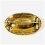 Zhotoveno ze zlacené slitiny s obsahem stříbra o ryzosti 290/1000, zapínání z obecného kovu; dle rozboru puncovního úřadu, neznačeno. Hmotnost 6,07 g, délka 35 mm, šířka 22 mm. Zapínání na "C" sponu v pořádku, stopy užívání, ponecháno s přirozenou patinou, lze vyčistit, v dobrém stavu.