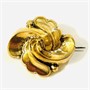 Starožitná brož z období biedermeieru v podobě stylizovaného uzlu, jednotlivé plastické části inspirované florální estetikou, zdobeno rytím. Kvalitní středoevropská zlatnická práce z poloviny 19. století. Vyrobeno technikou dutého kovu.