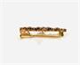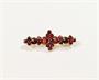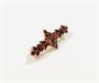 Půvabná podlouhlá brož osazena broušenými českými granáty a almandiny. Důmyslná práce s velikostmi a fasování kamenů. Jemná a kvalitní práce z 30. let 20. století. Zhotoveno ze zlaceného stříbra v kombinaci s obecným kovem. Hmotnost je 2,66 g. Délka brože je 33 mm, výška je 14 mm. Zapíníní v pořádku, opatřeno pojistkou. Ve velmi dobrém stavu.