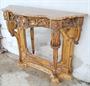 Zlacený konzolový stolek. Původní zlacení, drobné otluky. Mramor bez poškození. Rozměr 116x38,5cm, výška 96cm