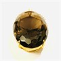 Výrazný, extravagantní závěs osazený velkou přírodní tmavší záhnědou oválného brusu (délka 45 mm), zasazeno v rámečku s florálně dekorativním frontonem osazeným čirými kameny kulatého brusu. Kvalitní zlatnická, patrně asijská práce z poslední čtvrtiny 20. století.
