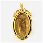 Zasazeno ze zlaceného obecného kovu; neznačeno. Hmotnost 31,43 g, celková délka 61 mm, šířka 31 mm. V zachovalém stavu. Přírodní původ kamene ověřen u gemologa.