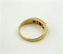 Zlacené stříbro, přírodní české ručně broušené granáty. Ryzost Ag 925/1000, celková hmotnost 3,05 g. Výrobce: Granát Turnov. Prsten ze zlaceného stříbra dekorovaný pravými českými granáty routového výbrusu. Značeno: československý punc kamzík a značka výrobce. Československo, Turnov, konec minulého století. Velikost 57.