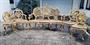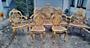 Slušný stav, před několika lety restaurováno. Rozměr: Sedačka 160x61cm, výška 123cm, výška sedáku 43cm, křesla 66x52,5cm, výška 105cm, výška sedáku 43cm, židle 45x44cm, výška 94cm, výška sedáku 43cm
