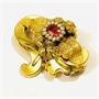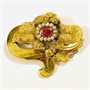 179053Zlatá biedermeierová brož s červeným kamenem a perlami
