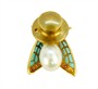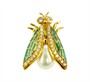 Decentní brož anglické značky ze žlutého zlata ryzosti 750/1000 je zdobena diamanty celkové hmotnosti 0,25 ct a perlou, křídla jsou zdobená smalty. Uzávěr je z obecného kovu. Celková hmotnost brože je 3,94 g. Šperk je v původní etui značky Anthony Lodge - Fine Jewels. Rozměry brože jsou 2 x 1,5 cm. Ke šperku je vyhotoveno Osvědčení Puncovního úřadu.