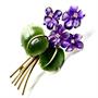 Ikonická, velmi půvabná zlatá brož s drahými kameny - kytička fialek. Šperk byl vyroben ze zlata ryzosti 585/1000, o celkové váze 9,20 g. Listy ručně vyřezány z nefritu sytého zeleného odstínu, květy z ametystů. Ametysty mají též velmi sytý odstín. Střed květů zdobí drobné brilianty. Perfektní stav.