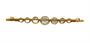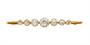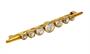 Brož ze zlata ryzosti 585/1000 zdobená křišťálem. Celková hmotnost 4,26 g. Rozměry 5,5 x 0,7 cm.
