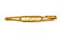 Jemná, elegantní brož ze zlata ryzosti 750/1000 zdobená třemi perličkami. Rozměry 4,8 x 0,5 cm. Celková hmotnost 1,58 g.