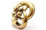 Zlatá brož s rubínem. Žluté zlato 540/1000, 585/1000, rubín zasazen ve stříbře. Rubín 0,32 ct.