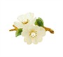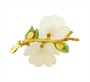 Brož ze žlutého zlata ryzosti 585/1000, květy vyřezány z horského křišťálu, lístky z nefritu, v květech jsou dvě perličky. Rozměry 4,8 x 3,5 cm, celková hmotnost 11,58 g.